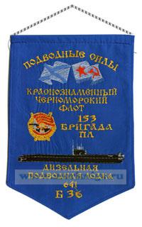 Вымпел 153 Бригада ПЛ Дизельная подводная 641 Б-36 КЧФ изготовлен из атласного материала. Машинная вышивка. Размер вымпела: ширина 16 см высота 23 см Собственное производство. См. также Макет дизельной подводной лодки проекта 641