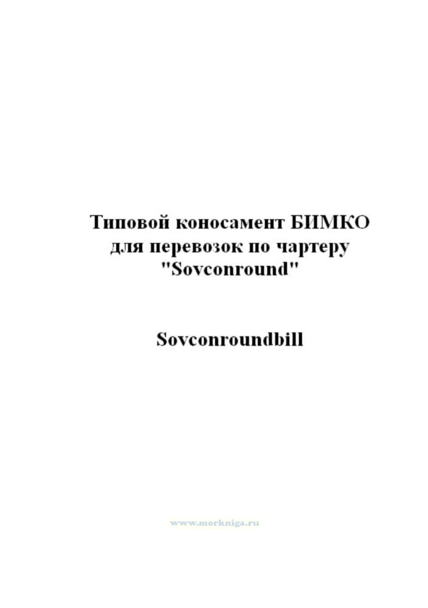 Типовой коносамент БИМКО для перевозок по чартеру "Sovconround" включен в сборник Проформы чартеров и коносаментов. Книга 5.