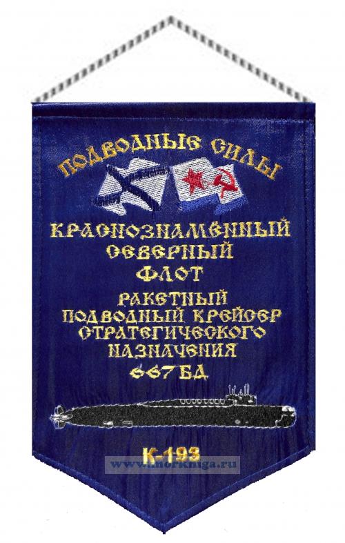 Вымпел Ракетный подводный крейсер стратегического назначения 667 БДРМ Карелия К-18 КСФ изготовлен из атласного материала. Размер вымпела: ширина 16 см высота 23 см Изготовлен частным мастером в г. Севастополе