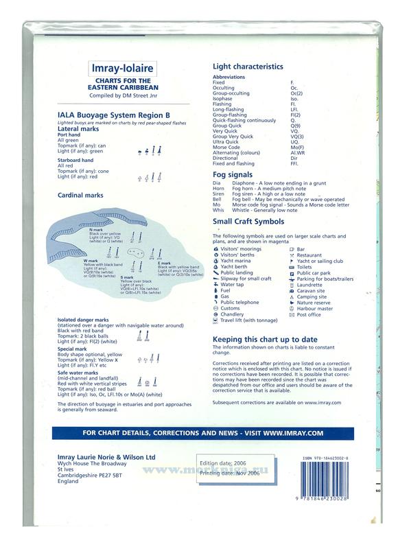 Imray-Iolaire charts for Caribbean are widely acknowledged as the best available for the cruising sailor. They combine the latest official survey data with first-hand information gathered over 60 years of research by Don Street Jr and his wide network of contributors. Like all Imray charts, they are printed on water resistant Pretex paper for durability, and they include many anchorages, facilities and inlets not included on official charts.