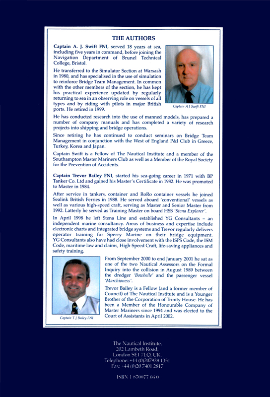 The book Bridge Team Management by Captain AJ Swift is used to reinforce the videos and is supplied with the series. Additional back up material entitled Bridge WaUhkeepingalso published by the Institute can be purchased seperately as part of the programme (see overleaf for details).