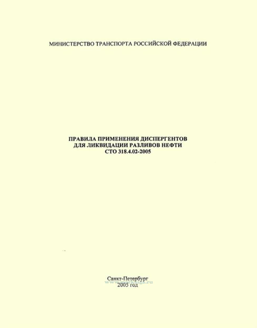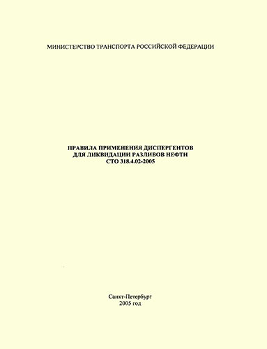СТО 318.4.02-2005 "Правила применения диспергентов для ликвидации разливов нефти" принят и введен в действие Постановлением ТК 318 «МОРФЛОТ» №2 от 01.11.2005 г.