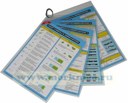 8 ламинированных с двух сторон листов, напромокаемых, соединенных кольцом, годных к использованию на яхте.