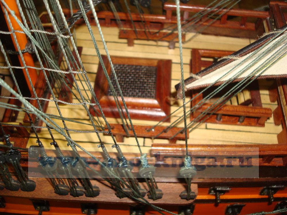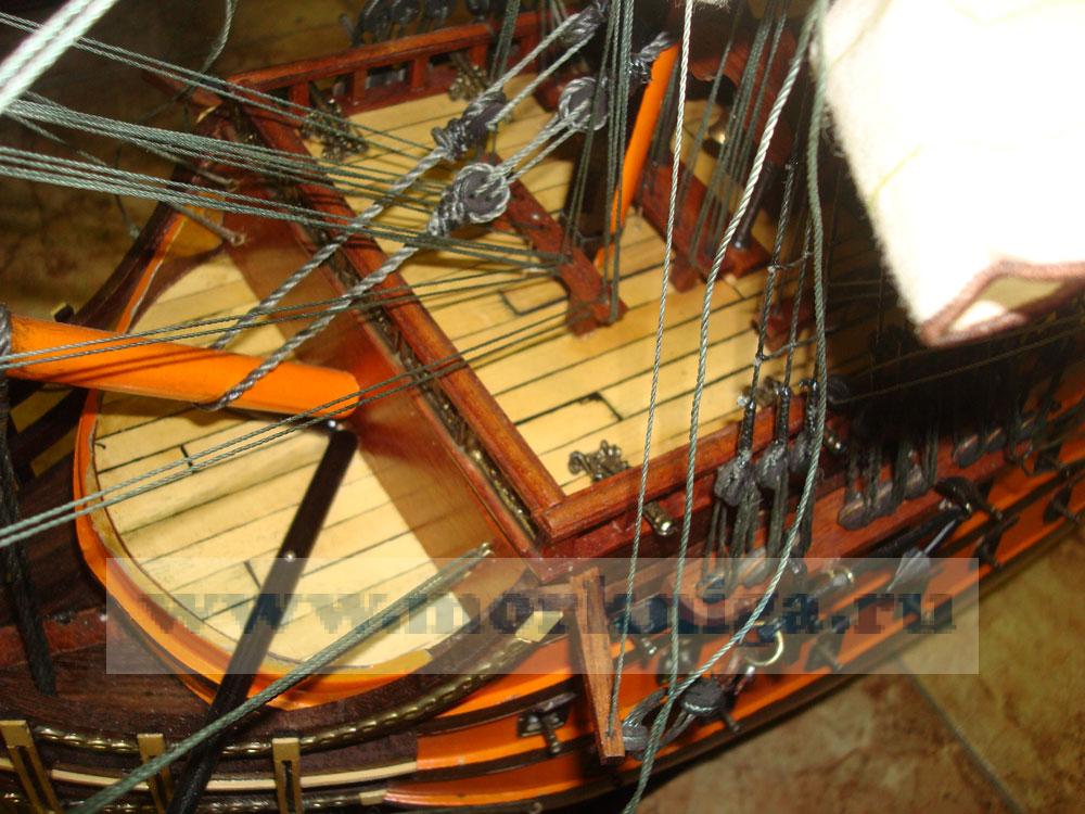 Кормовая часть модели собирается из нескольких литых металлических деталей со вставками из ценных пород дерева, что делает эту часть корабля очень впечатляющей.