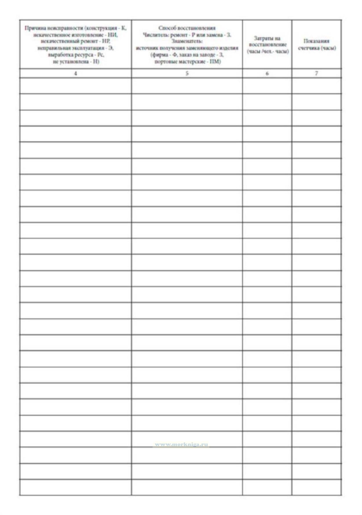 13. В графе 7 приводятся показания счетчика машинного времени (при его наличии) на момент проведения оперативного осмотра или начала планового ремонта.