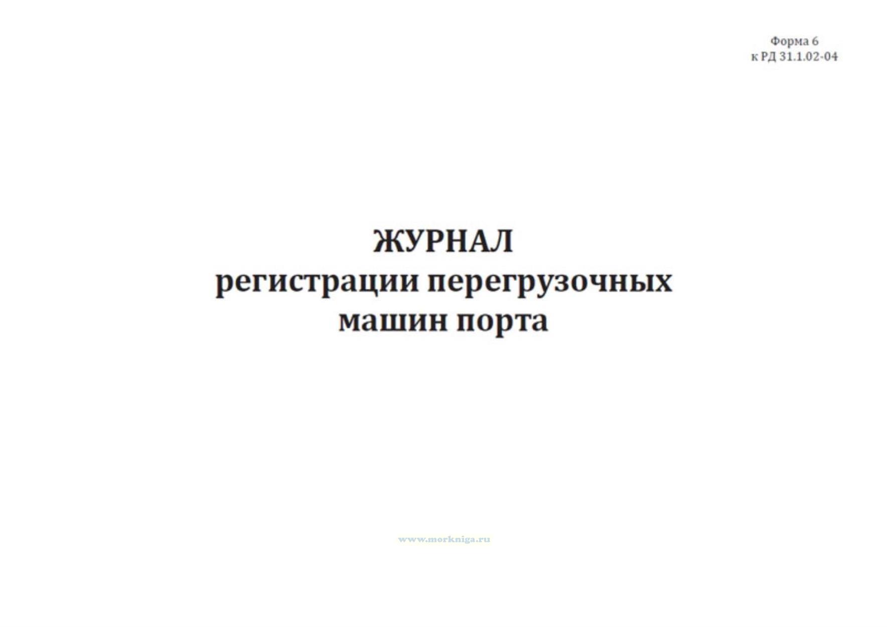 Форма журнала регистрации перегрузочных машин порта соответствует форме №6 Приложения 14 к Правилам технической эксплуатации подъемно-транспортного оборудования морских торговых портов. РД 31.1.02-04.