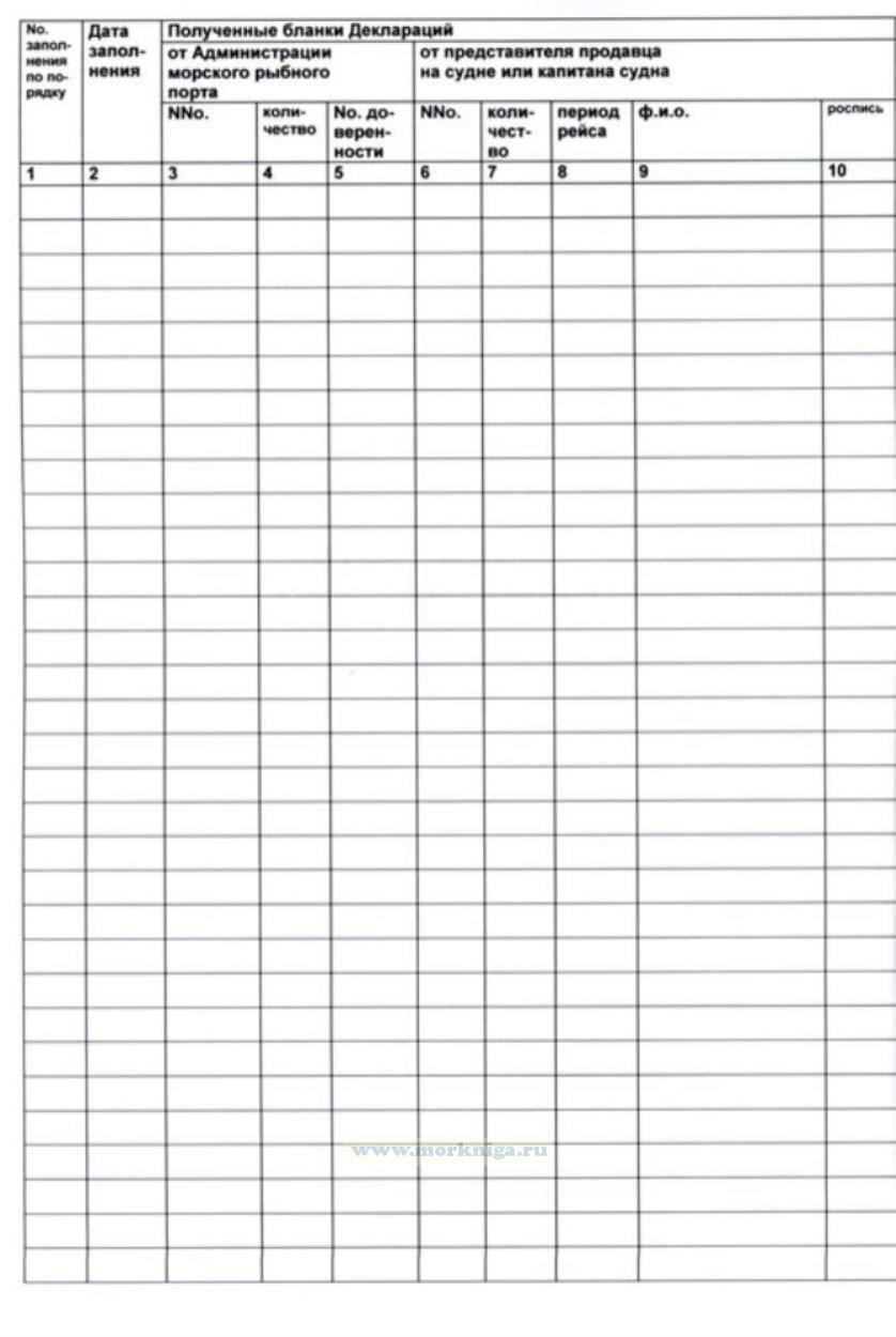 Настоящая Книга учета бланков судовых грузовых деклараций является приложением 3 к Порядку декларирования продукции морского рыболовного промысла, поставляемой по внешнеторговым операциям за пределы таможенной территории РФ