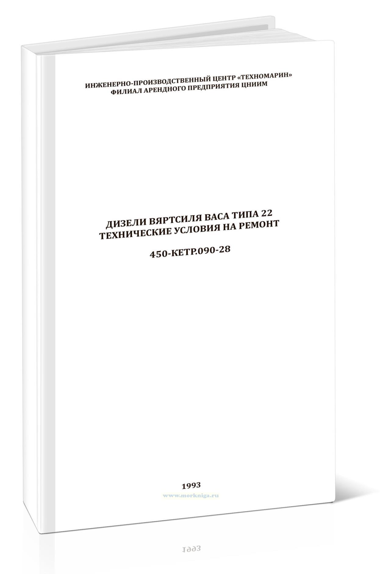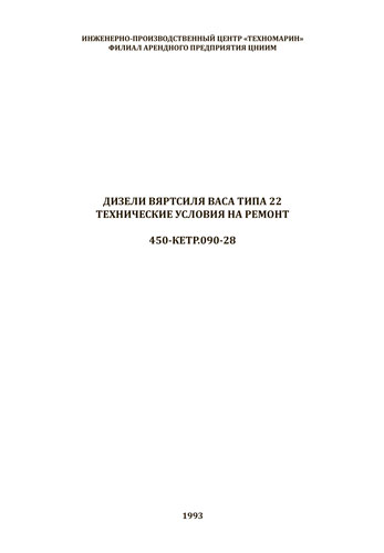 Настоящие технические условия распространяются на ремонт дизелей фирмы Вяртсиля (Wartaila) типа Васа 22 (Vasa 22), A, B, C, HF, МД, установленных на ледокольных, транспортных и вспомогательных судах в качестве главных и вспомогательных двигателей.