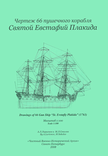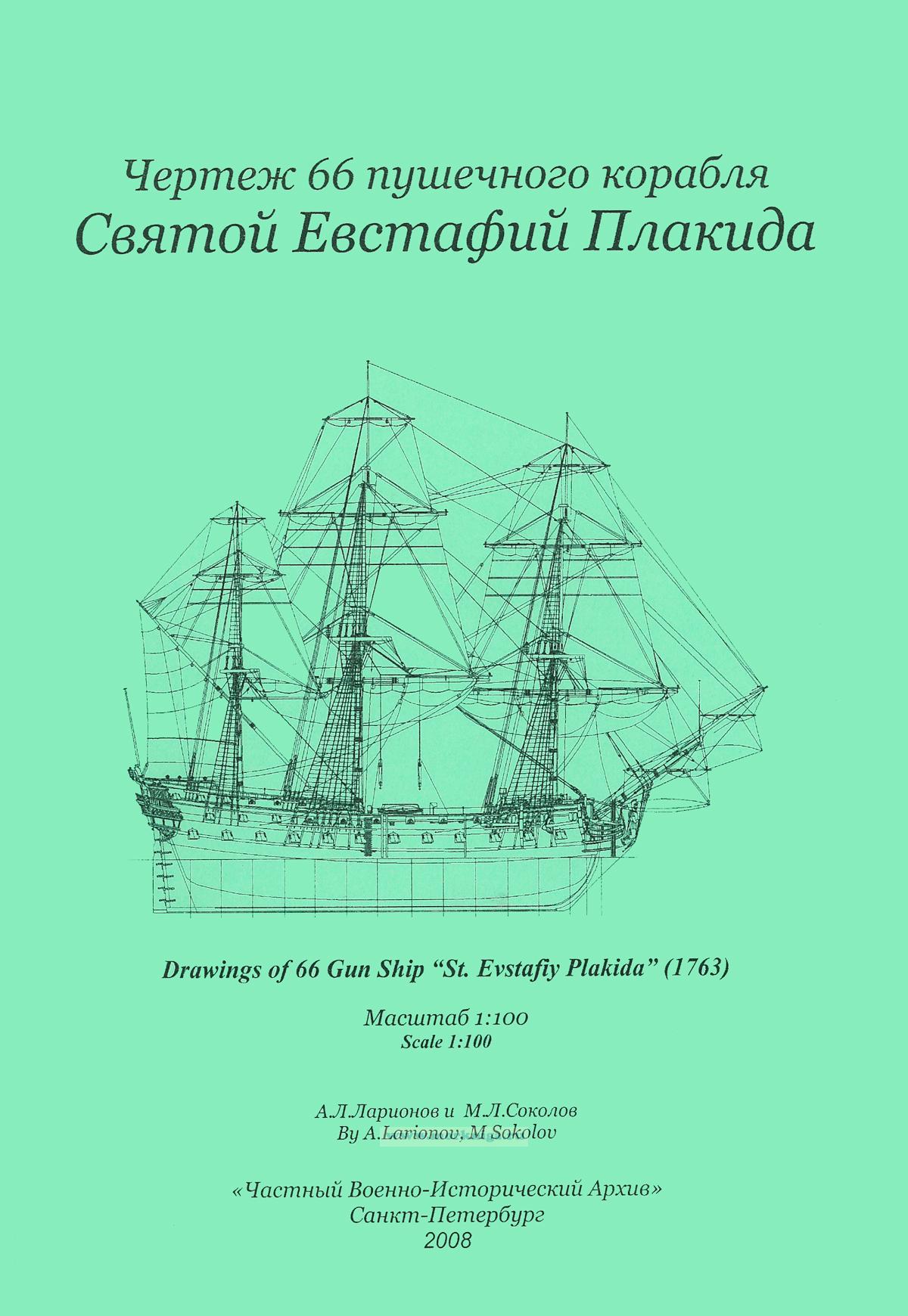 Корабль 66 - пушечного ранга “Святой Евстафий Плакида” был построен согласно “Табеля о корабельных пропорциях”, составленного при участии Петра I и ведущих корабельных мастеров его времени, он действовал с 1725 по 1777 г.г. На чертеже, составленном корабельным мастером Даниилом Улъфовым, есть, датированная 21 мая 1762 г. надпись, что чертеж освидетельствован Адмиралтейской коллегией и обер - сарваерской конторой и по длине, ширине и глубине “...против положенных пропорций сходен и к построению корабля годен”. Эта надпись говорит о том, что Д. Ульфов, проектируя свой корабль, строго придерживался “Табеля 1725 г.”.
