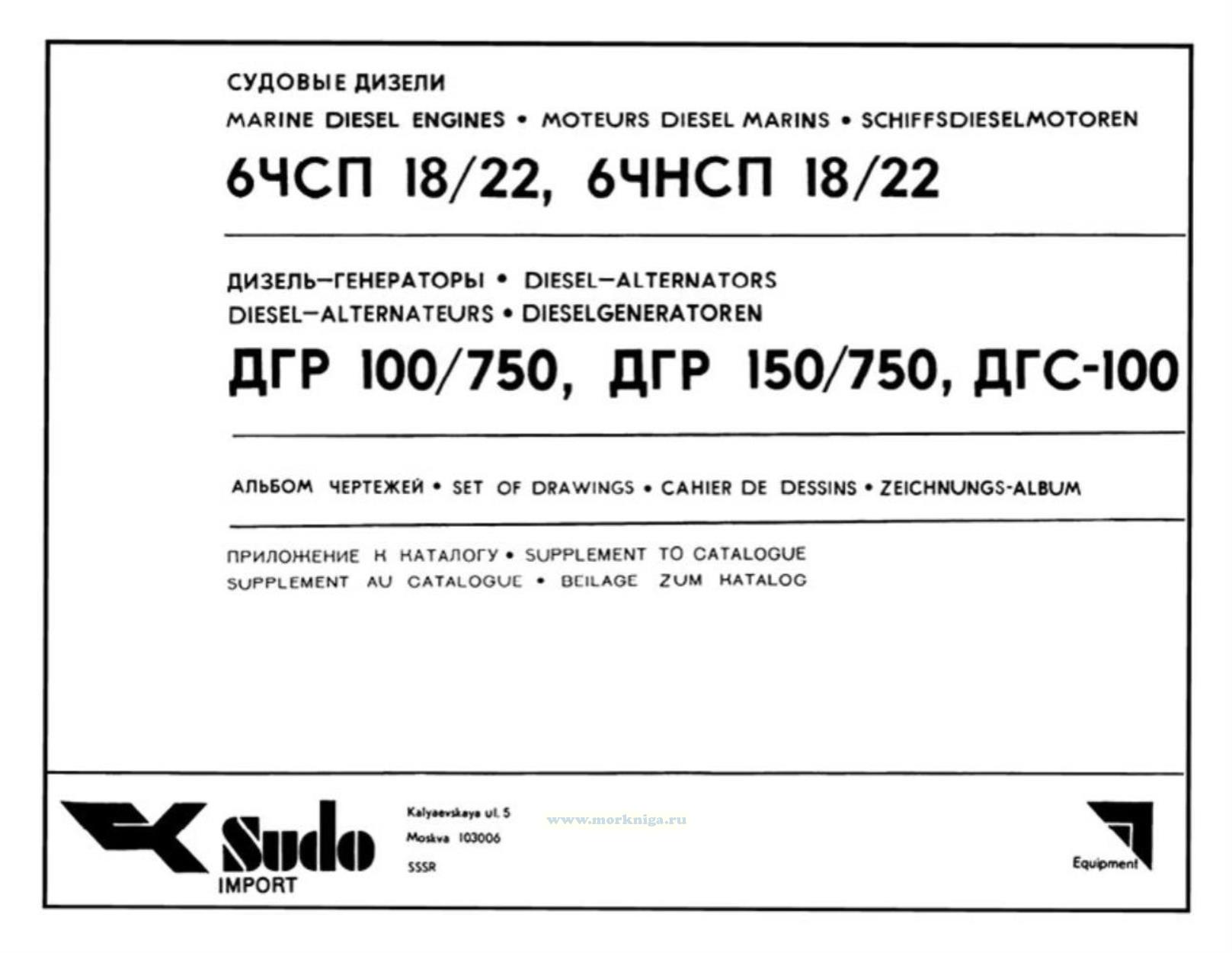 Альбом чертежей на судовые дизели 6ЧСП 18/22 , 6ЧНСП 18/22, дизель-генераторы ДГР 100/750, ДГР 150/750, ДГС-100.