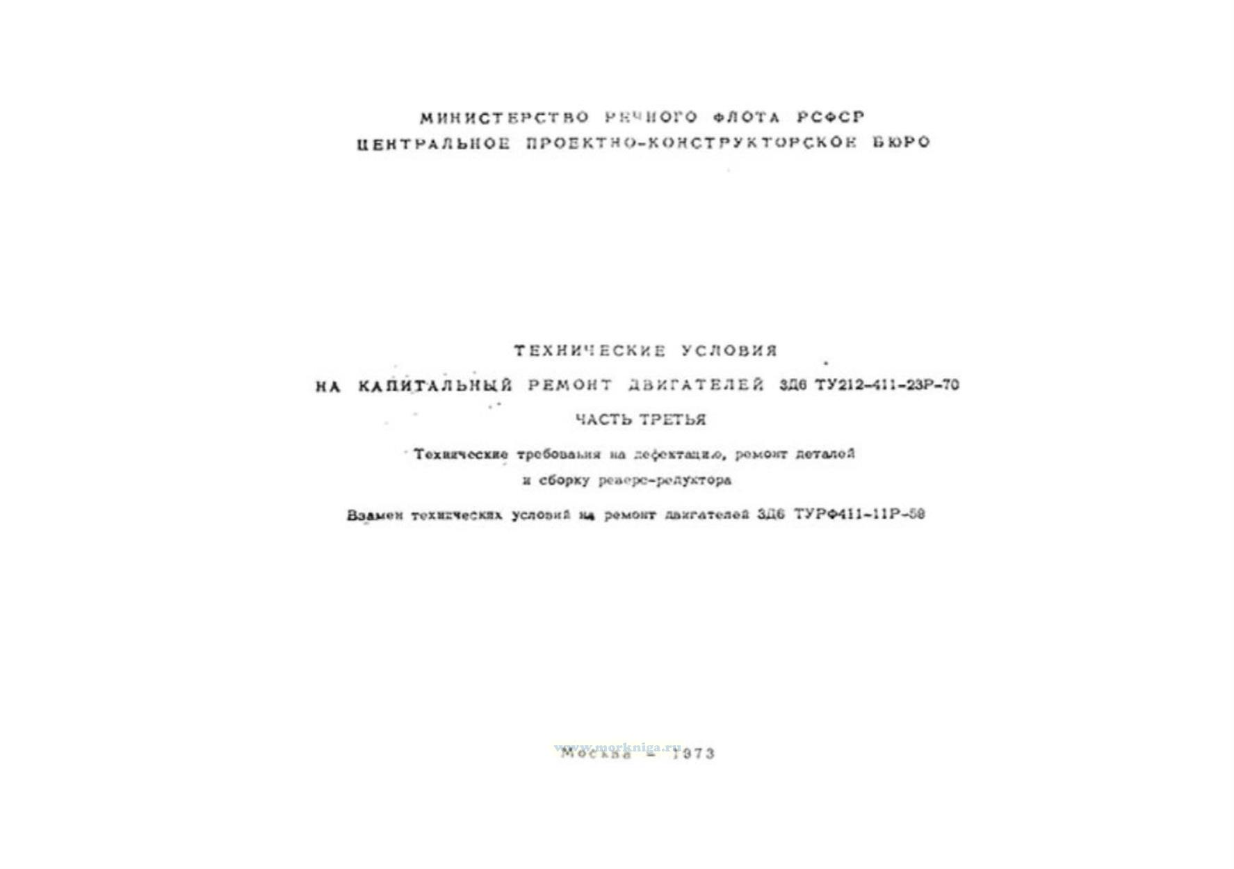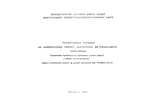 Третья часть технических условий на капитальный ремонт реверс-редуктора двигателя 3Д6 состоит из карт технических условий на дефектацию и ремонт деталей и узлов, а также на сборку реверс-редуктора.
