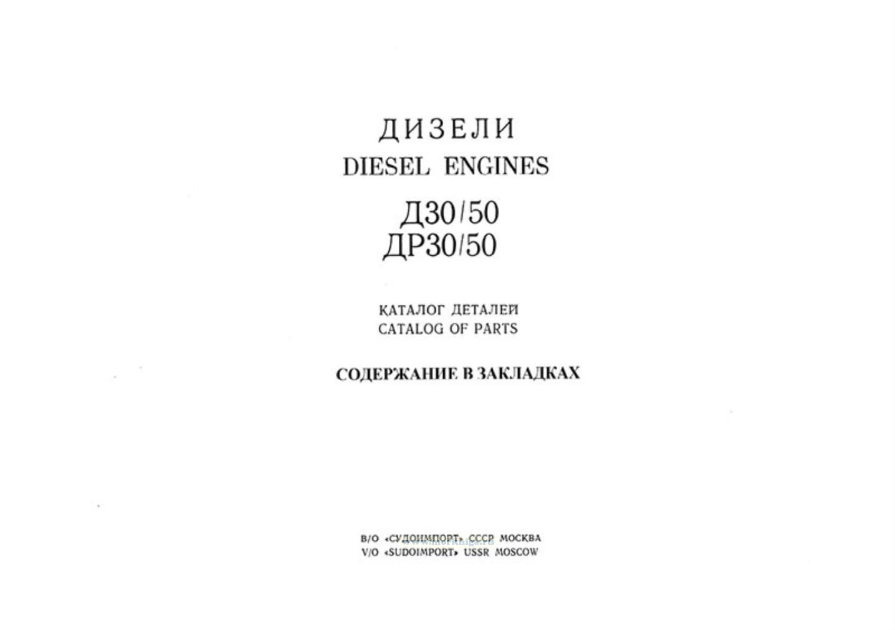 The present catalog contains brief description of the design of diesel engines type Д30/50 and ДР30/50, main technical characteristics of their modifications and illustrated specifications of parts and units.