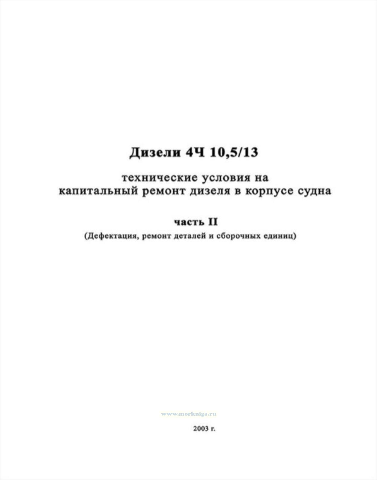 Настоящие технические условия распространяются на капитальный ремонт судовых дизелей 4Ч10,5/13 в корпусе судна.