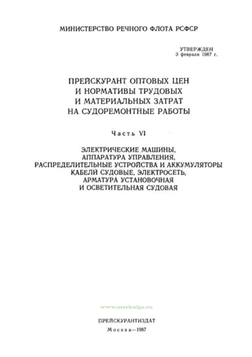 Прейскурант оптовых цен и нормативов трудовых и материальных затрат на судоремонтные работы. Часть I