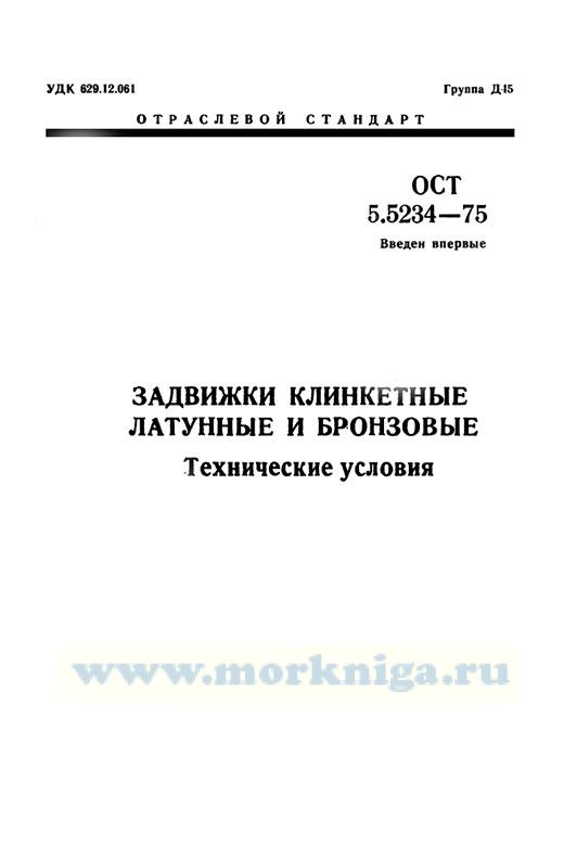 Настоящий стандарт распространяется на латунные и бронзовые клинкетные задвижки, применяемые на кораблях, судах и плавсредствах, эксплуатируемых во всех районах плавания.