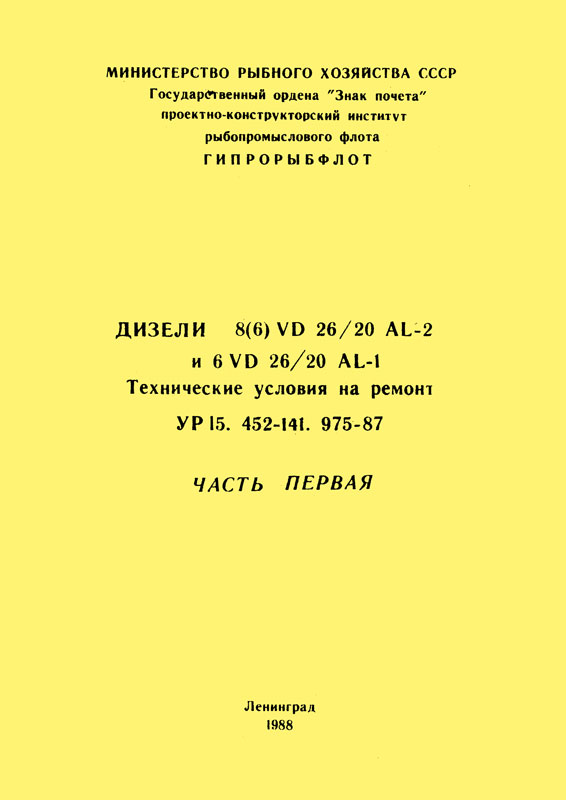 Дизели 8(6) VD 26/20 AL-2 и 6 VD 26/20 AL-1. Технические условия на ремонт. УР.15. 452-141.975-87. Часть вторая