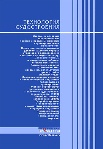 Учебник соответствует программе дисциплины "Технология судостроения" специальности 140100 "Кораблестроение" направления 652900 "Кораблестроение и океанотехника" и может быть использован в процессе подготовки учащихся других специальностей и специалистами отрасли.
