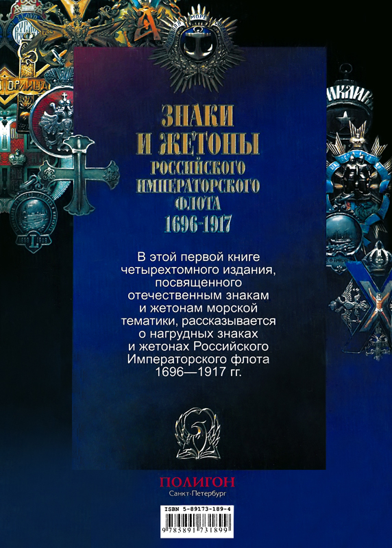 В книге рассказано о нагрудных знаках и жетонах Российского Императорского флота 1696- 1917 гг., вручаемых за окончание военно-учебных заведений, за подвиги и служебные отличия, в память о юбилейных датах и о заграничных плаваниях, за победы на гребно-парусных гонках и т. д.