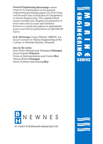This third edition of General Ragmeerwg Knowledge has been expanded and updated to cover changes in the examination questions and legislation introduced since the previous edition. The chapter on pollution prevention now includes sections on disposal of chemicals and garbage, in addition to notes on prevention of pollution by oil, the Clean Air Act and disposal of sewage. A new chapter on production of water by low-pressure evaporators and reverse osmosis contains notes on treatment to make the water potable and on problems with bacteria.