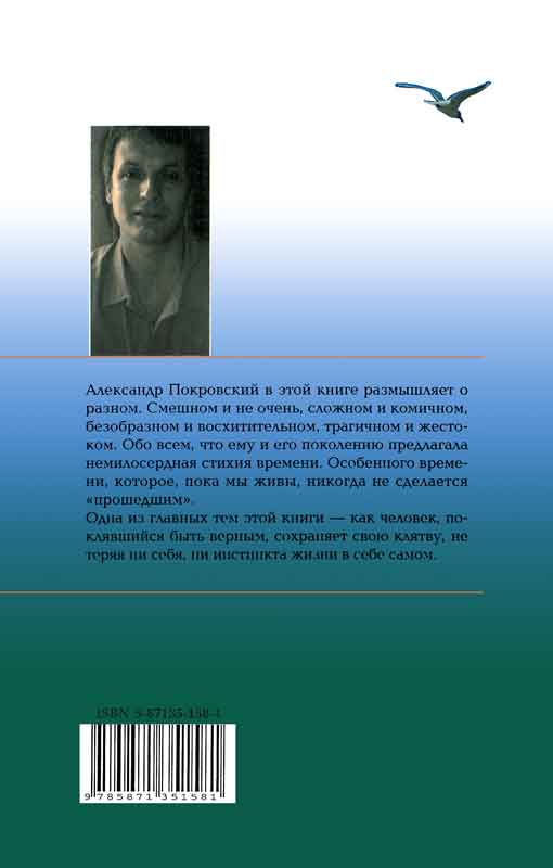 Александр Покровский в этой книге размышляет о разном. Смешном и не очень, сложном и комичном, безобразном и восхитительном, трагичном и жестоком. Обо всем, что ему и его поколению предлагала немилосердная стихия времени. Особенного времени, которое, пока мы живы, никогда не сделается "прошедшим".