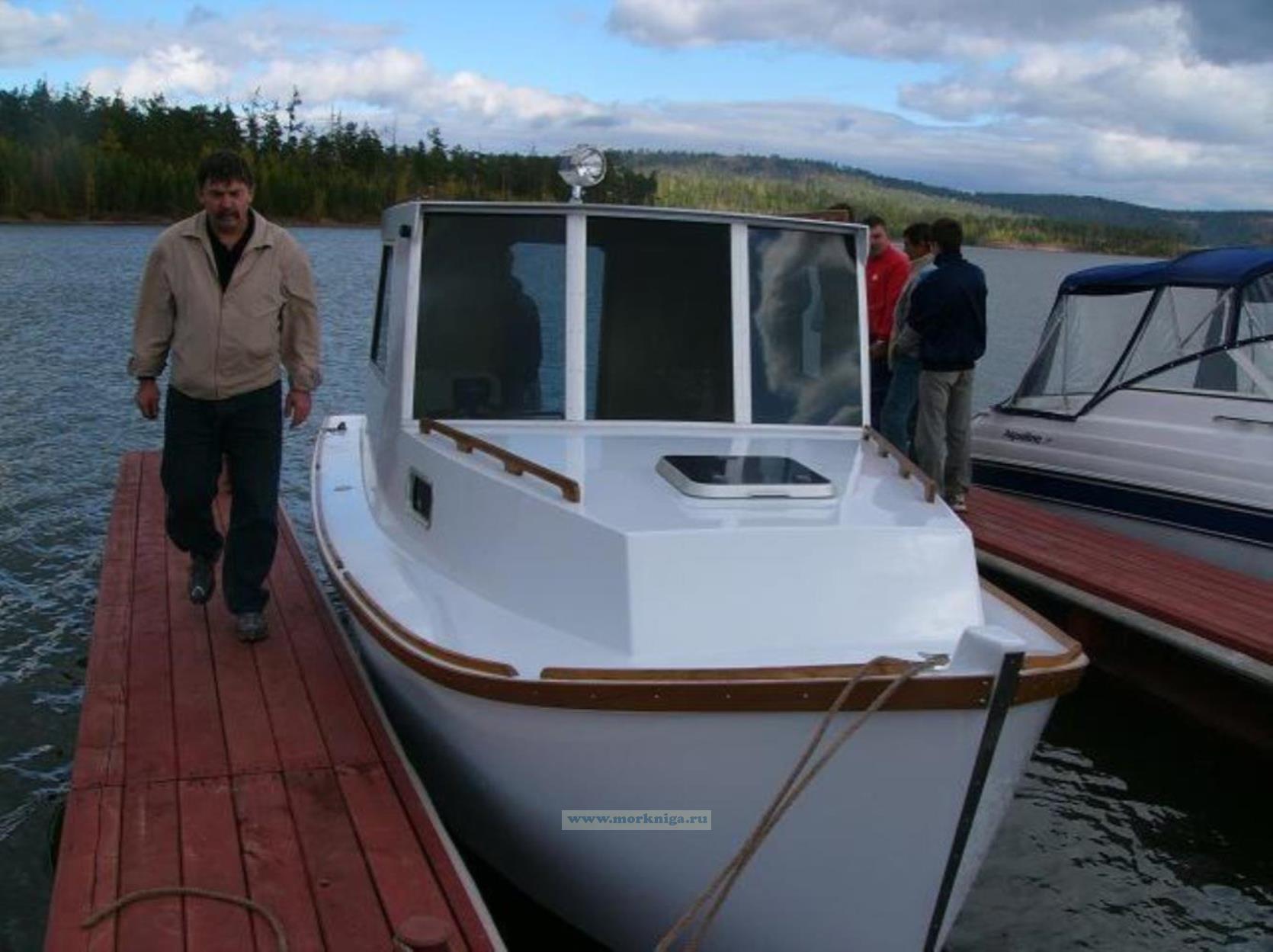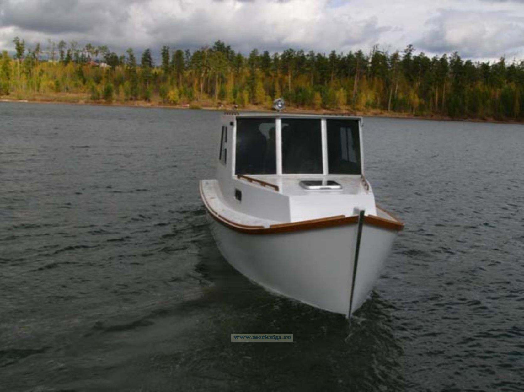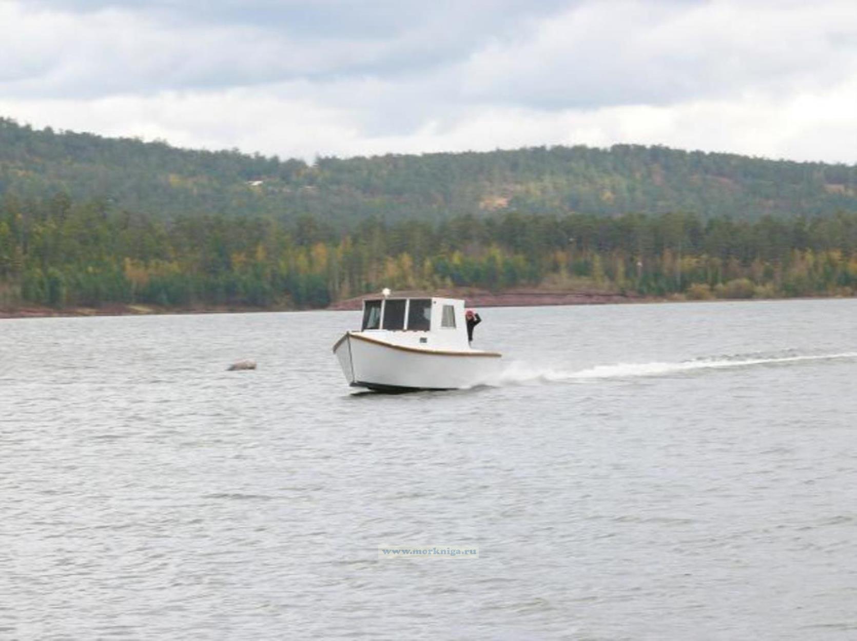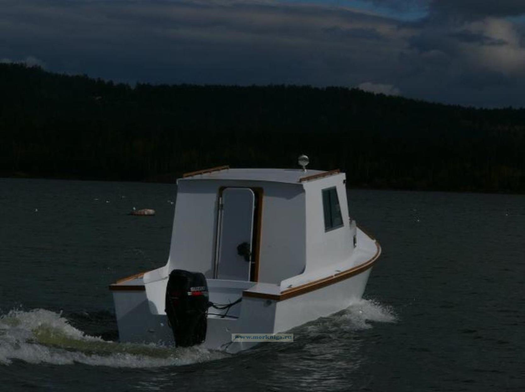 Корпус изготавливается из фанеры и обклеивается стеклотканью, двигатель подвесной мотор от 50 л.с.