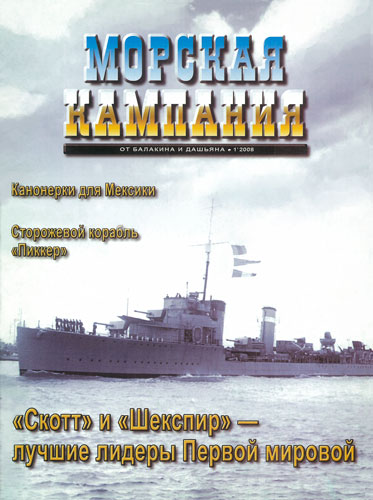 В этом номере мы публикуем первую часть статьи об английских лидерах типов “Скотт” и “Шекспир” - лучших для своего времени кораблях данного класса. Окончание статьи, в которой будет рассказано о службе кораблей и их модернизациях в годы Второй мировой войны, планируется включить в один из последующих номеров журнала. Заметим, что о лидерах серии “Скотт”/”Шекспир” до сих пор не было опубликовано ни одной мало-мальски подробной статьи ни в отечественной, ни в зарубежной литературе, и сегодняшний материал - первая монография об этих очень интересных, но незаслуженно забытых кораблях. Статья “Канонерские лодки типа “Дуранго” посвящена любопытным и малоизвестным кораблям, строившимся для мексиканского флота. Впервые приводятся их подлинные чертежи, найденные одним из авторов в испанском военно-морском архиве, а также редкие фотографии. И, наконец, отдельное приложение к опубликованной в прошлом году статье А.В.Полутова о японской десантной операции в Инчхоне (Чемульпо): боевые донесения командиров японских кораблей о бое 9 февраля 1904 г. Их перевод, взятый из “Совершенно секретной истории русско-японской войны на море в 37 - 38 гг. Мэйдзи”.