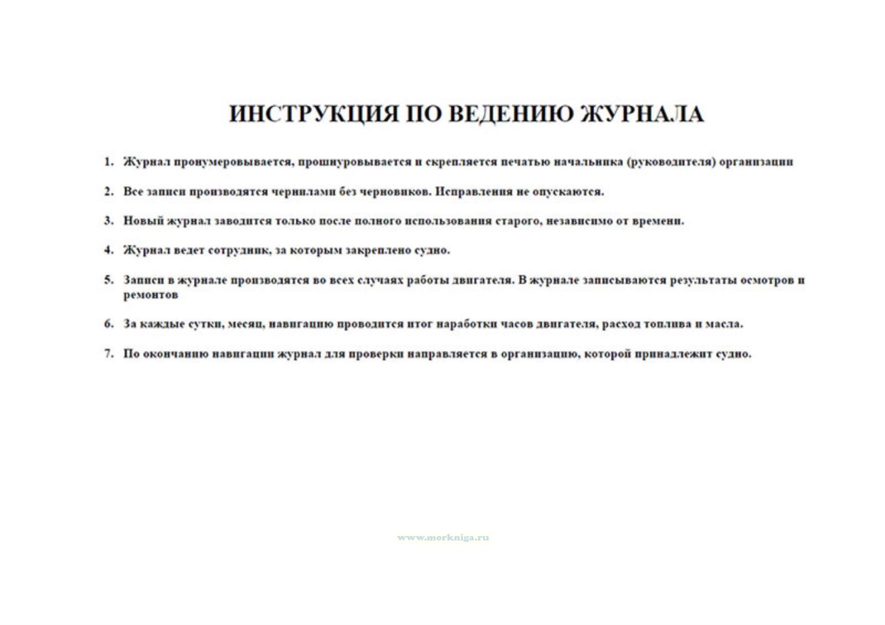 5. Записи в журнале производятся во всех случаях работы двигателя. В журнале записываются результаты осмотров и ремонтов