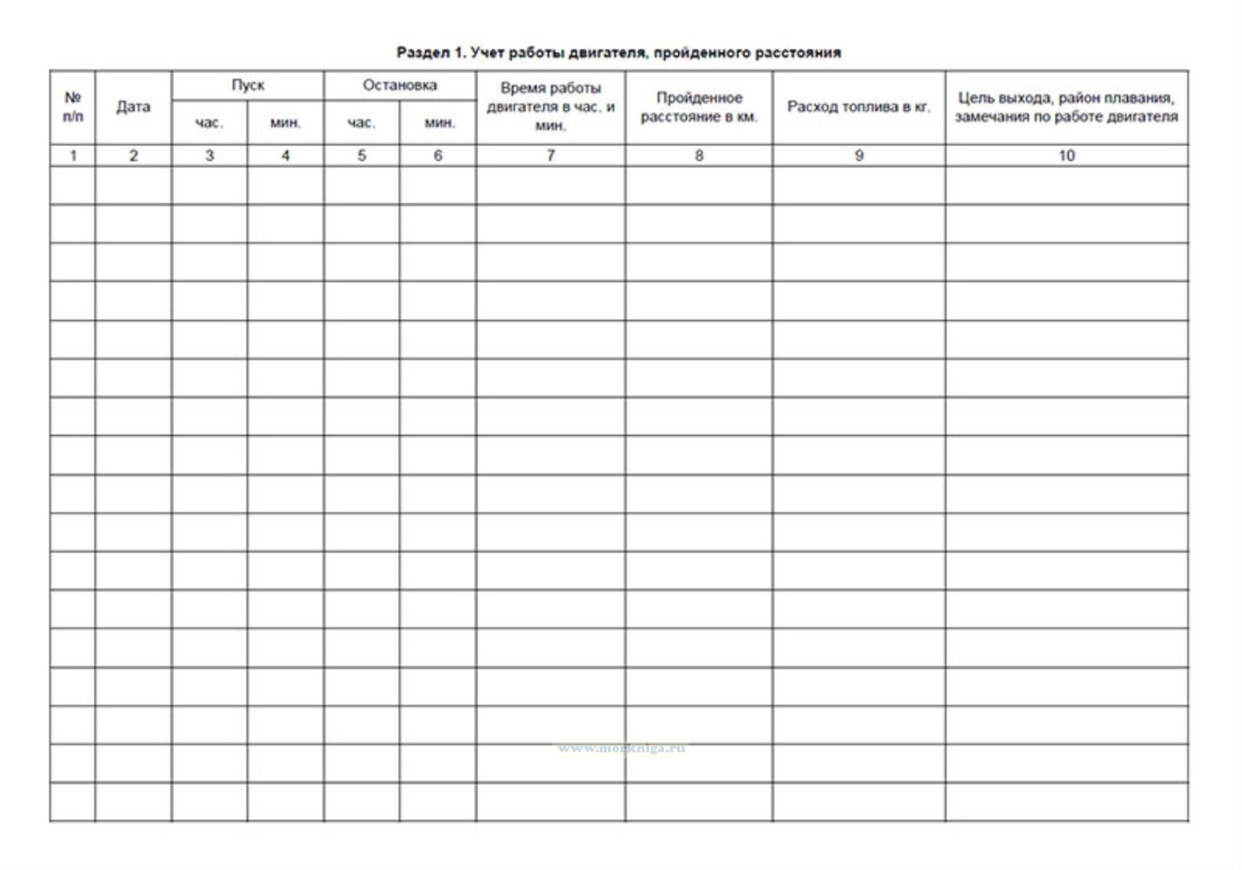 6. За каждые сутки, месяц, навигации проводится итог наработки часов двигателя, расход топлива и масла