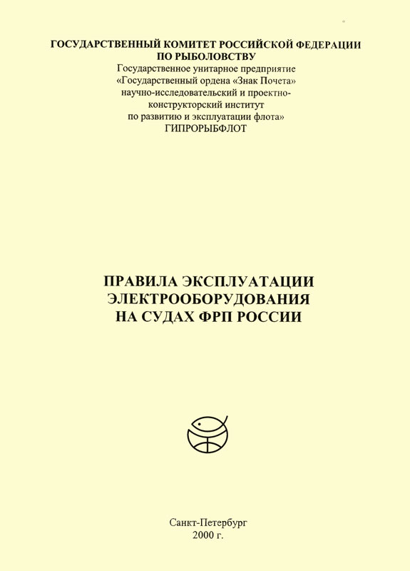 Введен в действие приказом Государственного комитета Российской Федерации по рыболовству от 10 ноября 2000 г. № 296 взамен "Правил эксплуатации электрооборудования на судах флота рыбной промышленности СССР" изд. 1987 г.