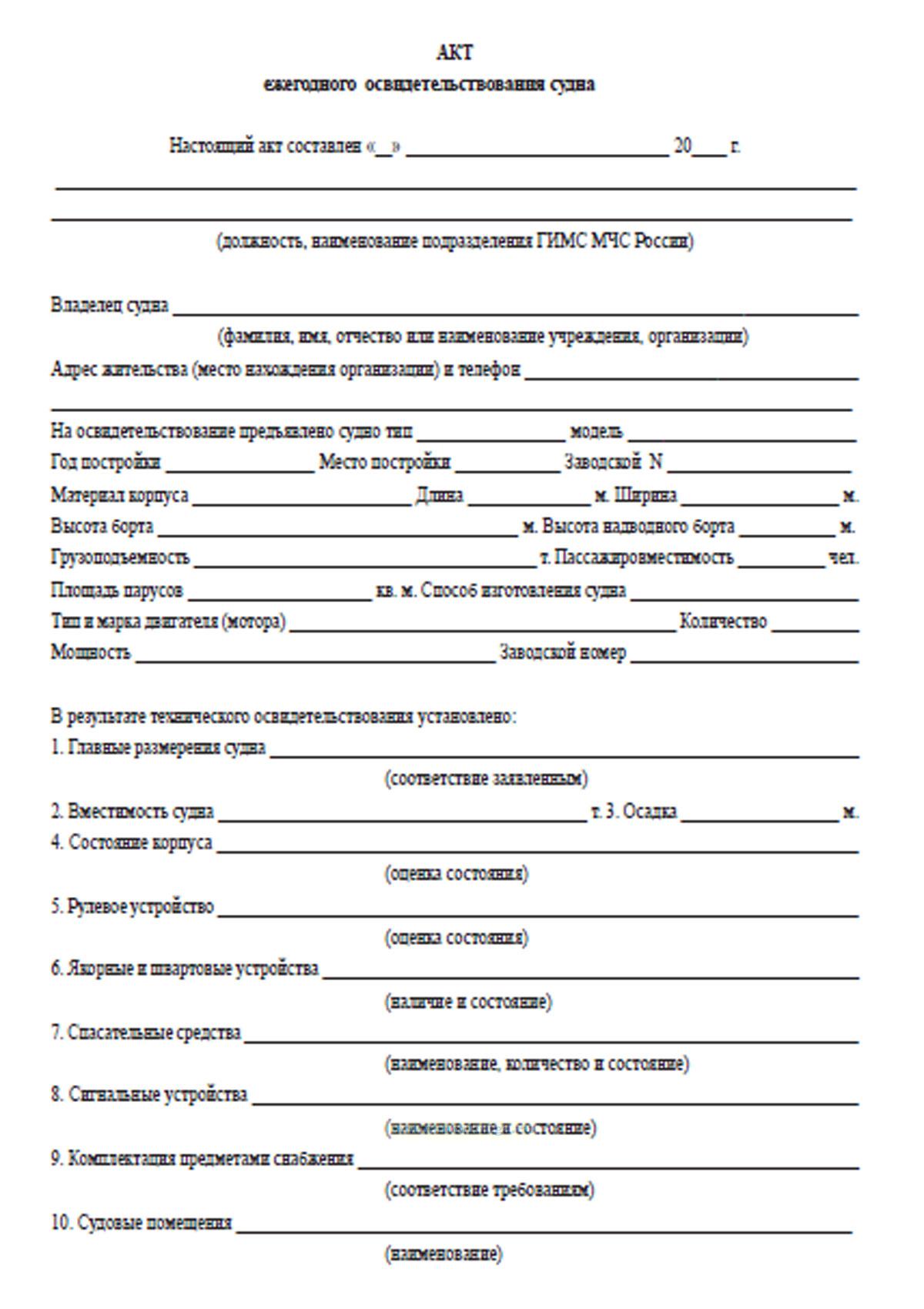 Ежегодное освидетельствование судна (за исключением маломерного, прогулочного и спортивного парусного судов) проводится в период между первоначальным и очередным или между очередными освидетельствованиями, включает в себя контрольную проверку технического состояния судна с целью определения соответствия судна требованиям Правил.
