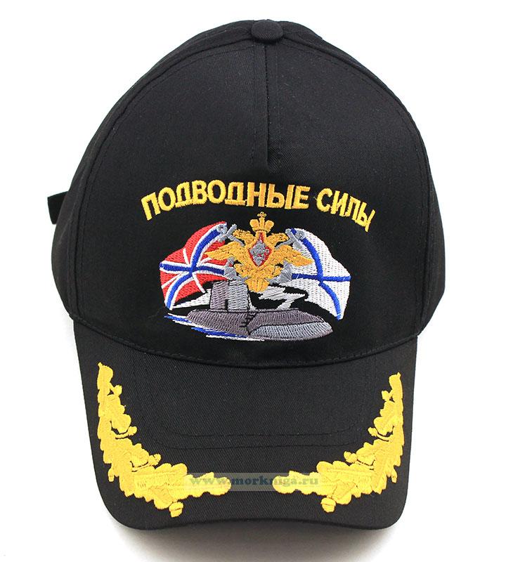На бейсболке вышита надпись "Подводные силы", на козырьке дубы.