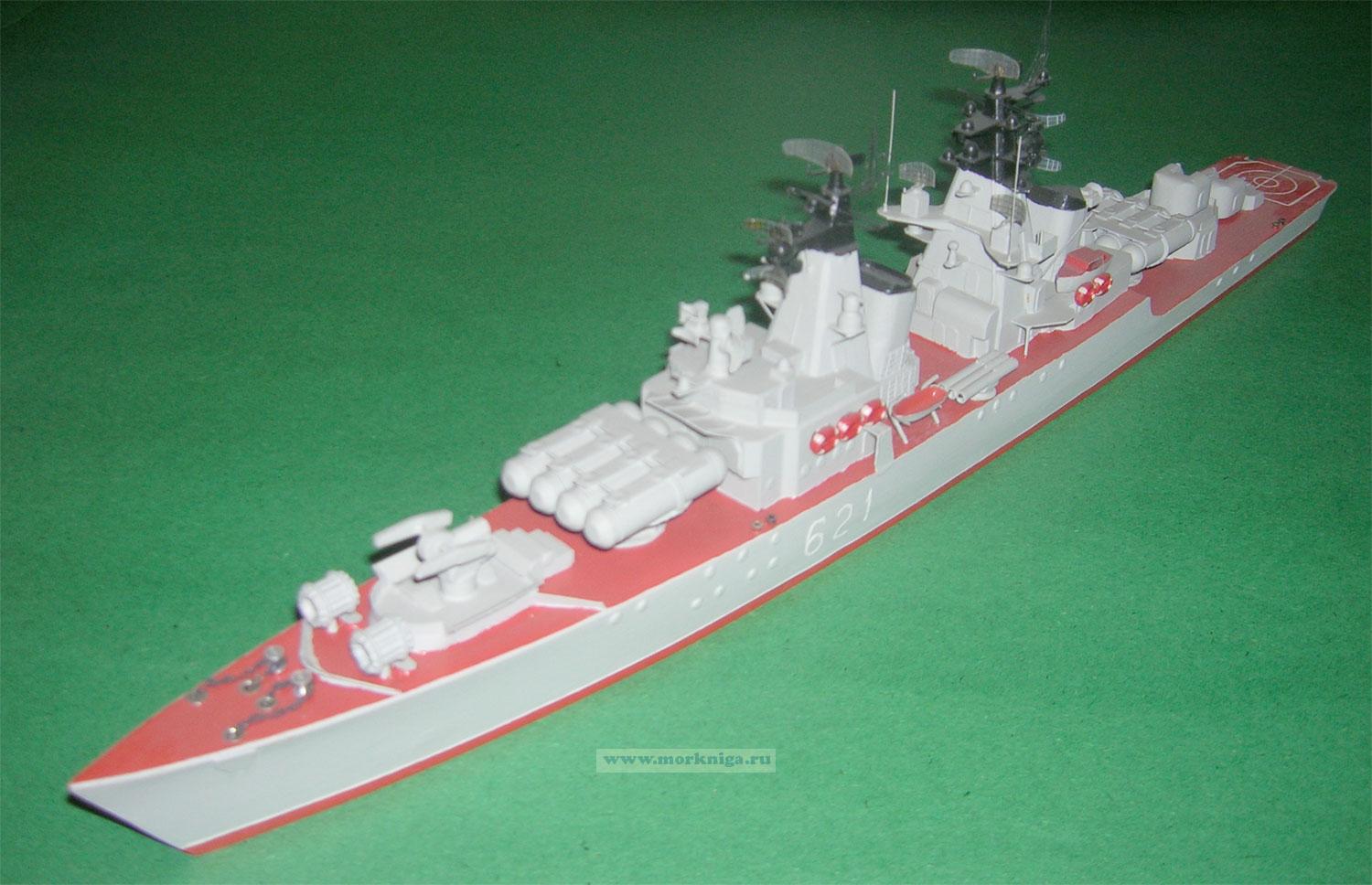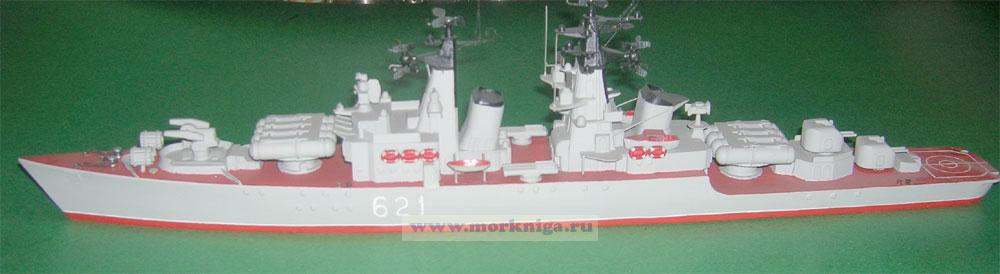 За прототип теоретического чертежа корпуса был выбран теоретический чертеж эсминца проекта 56. При заданном составе вооружения наилучшей архитектурной формой корпуса посчитали форму с длинным полубаком и небольшим подъемом к форштевню. Сам корпус набирался по продольной системе и водонепроницаемыми переборками делился на 17 отсеков. Непотопляемость корабля обеспечивалась при затоплении любых трех смежных отсеков, однако имелись зоны, где корабль выдерживал затопление и четырех смежных отсеков.