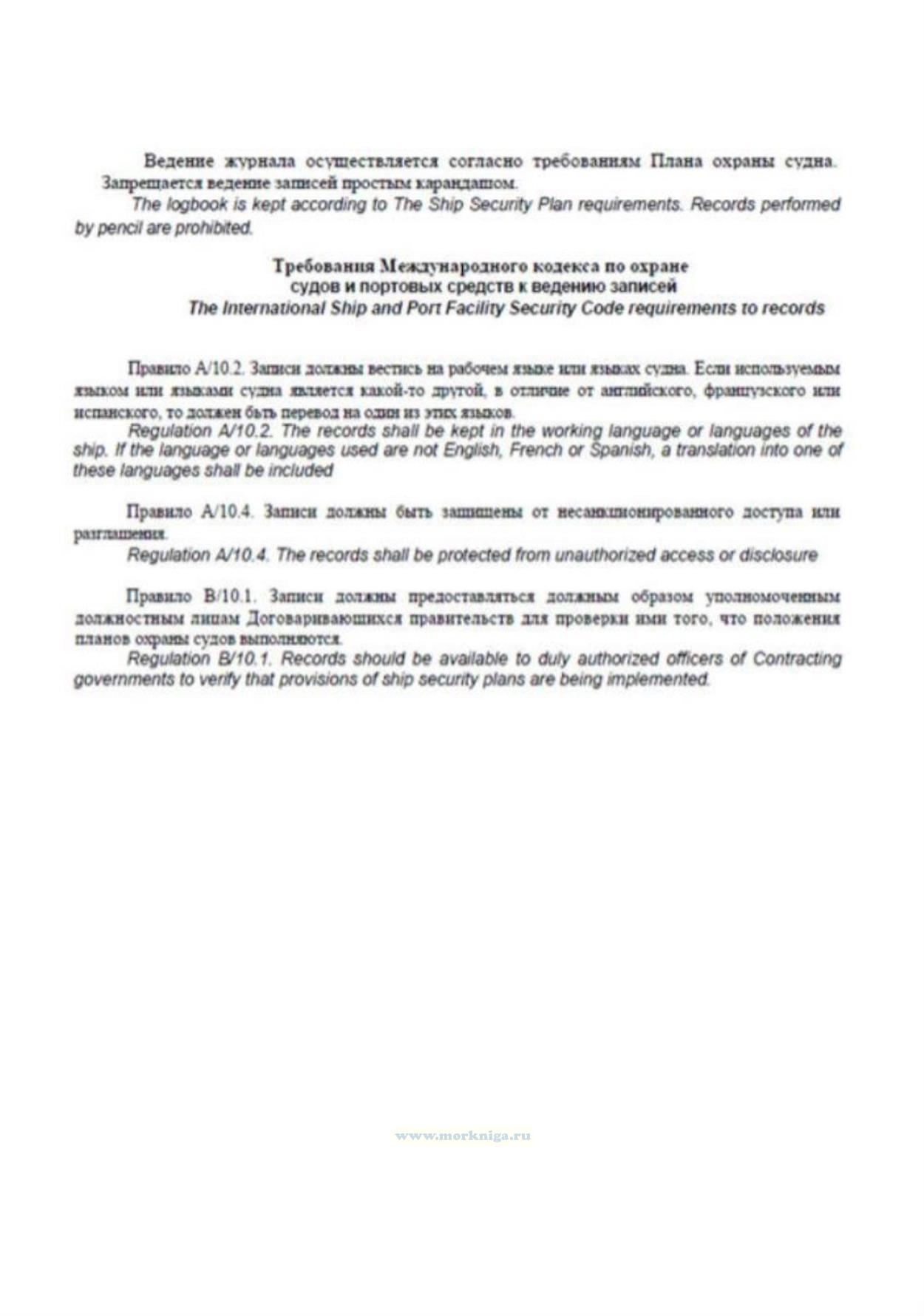 Ведение журнала осуществляется согласно требованиям плана охраны судна запрещается ведение записей простым карандашом.