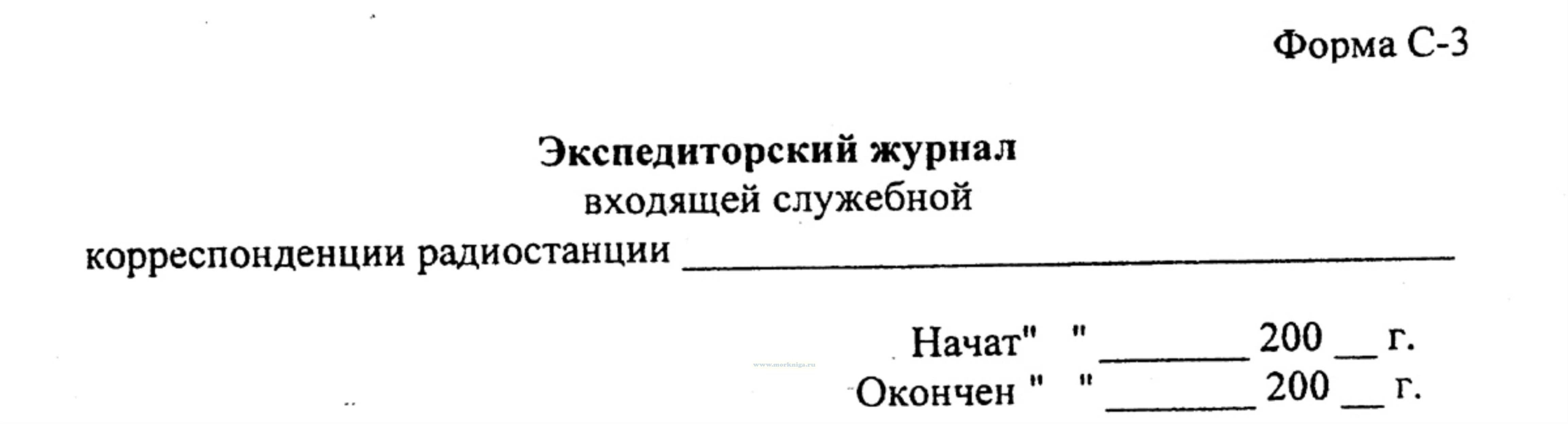 Форма экспедиторского журнала входящей служебной корреспонденции радиостанции (С-3) соответствует Приложению 2 к Правилам радиосвязи на ВВП РФ.
