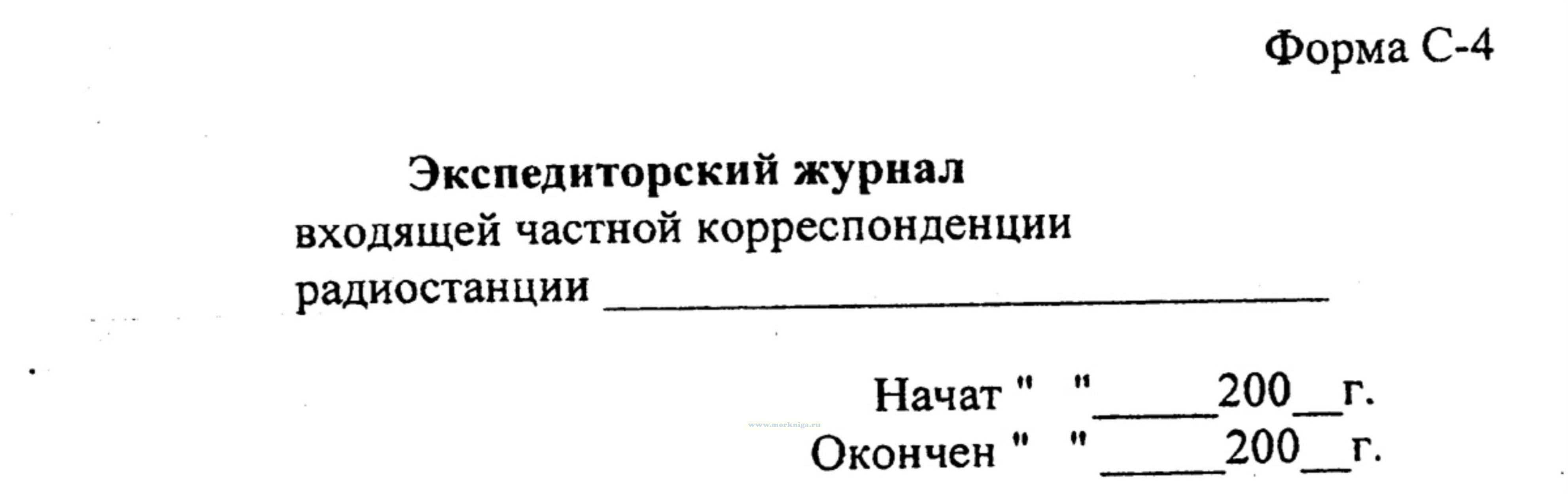 Форма экспедиторского журнала входящей служебной корреспонденции радиостанции (С-3) соответствует Приложению 2 к Правилам радиосвязи на ВВП РФ.