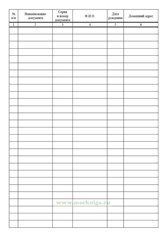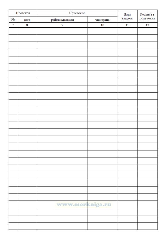 Графы журнала учета выдачи удостоверений на право управления маломерным судном: