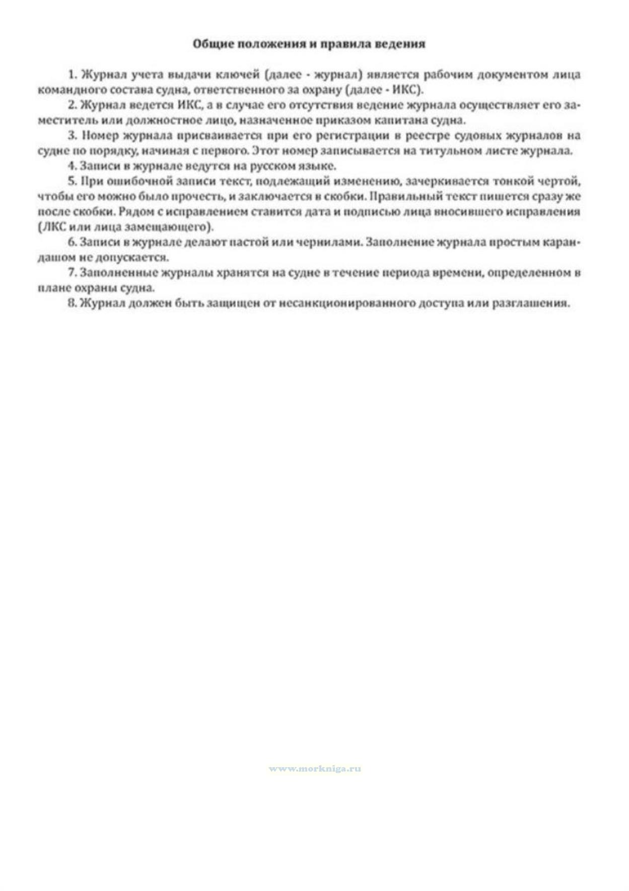 Форма журнала учета и выдачи ключей/Log of keeping and distributing keys определена Международным кодексом по охране судов и портовых средств.