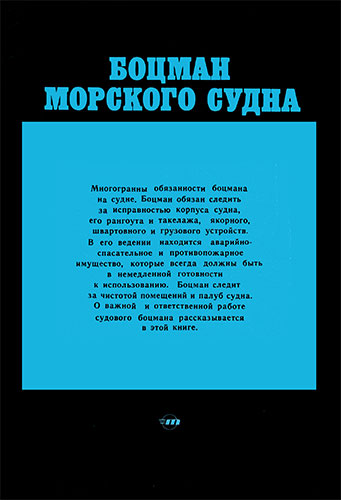 Предназначена для использования в качестве практического руководства в повседневной работе боцмана морского судна, а также может быть использована как учебное пособие для учащихся мореходных школ и учебно-курсовых комбинатов пароходств и портов.