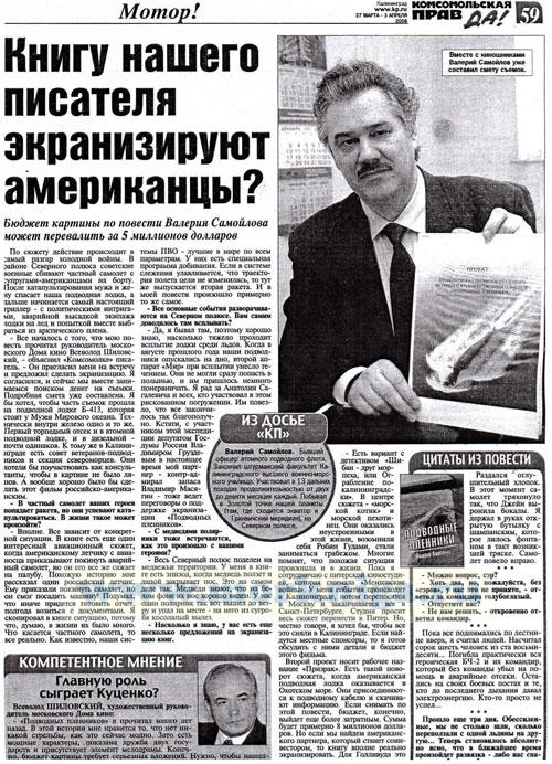 Готовится к изданию в ОАО "Янтарный сказ" повесть "Призрак" о спецоперациях американских подводных сил, которая может стать сенсацией.