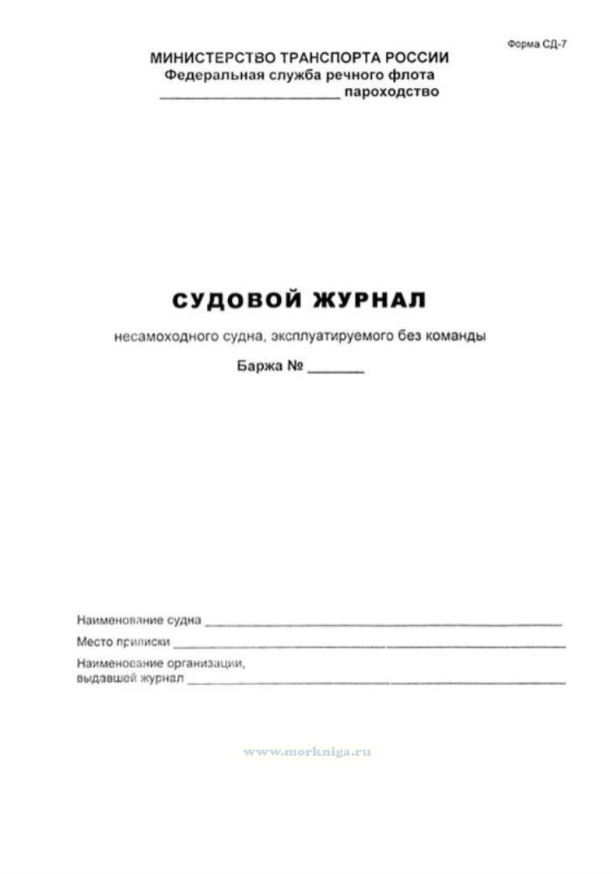 Инструкция о порядке ведение журнала несамоходного судна, эксплуатируемого без команды