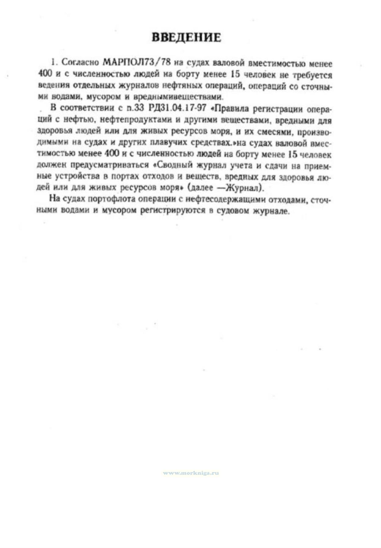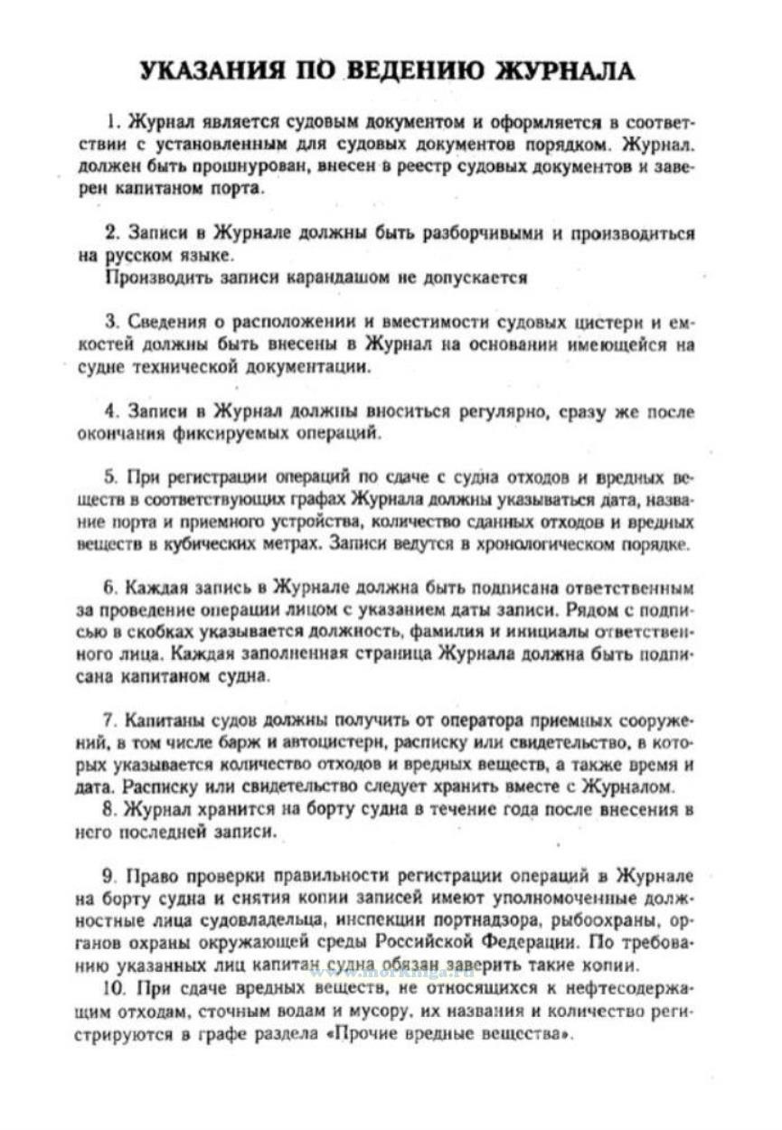 Указания по ведению Сводного журнала учета и сдачи на приемные устройства в портах отходов и веществ, вредных для здоровья людей или для живых ресурсов моря