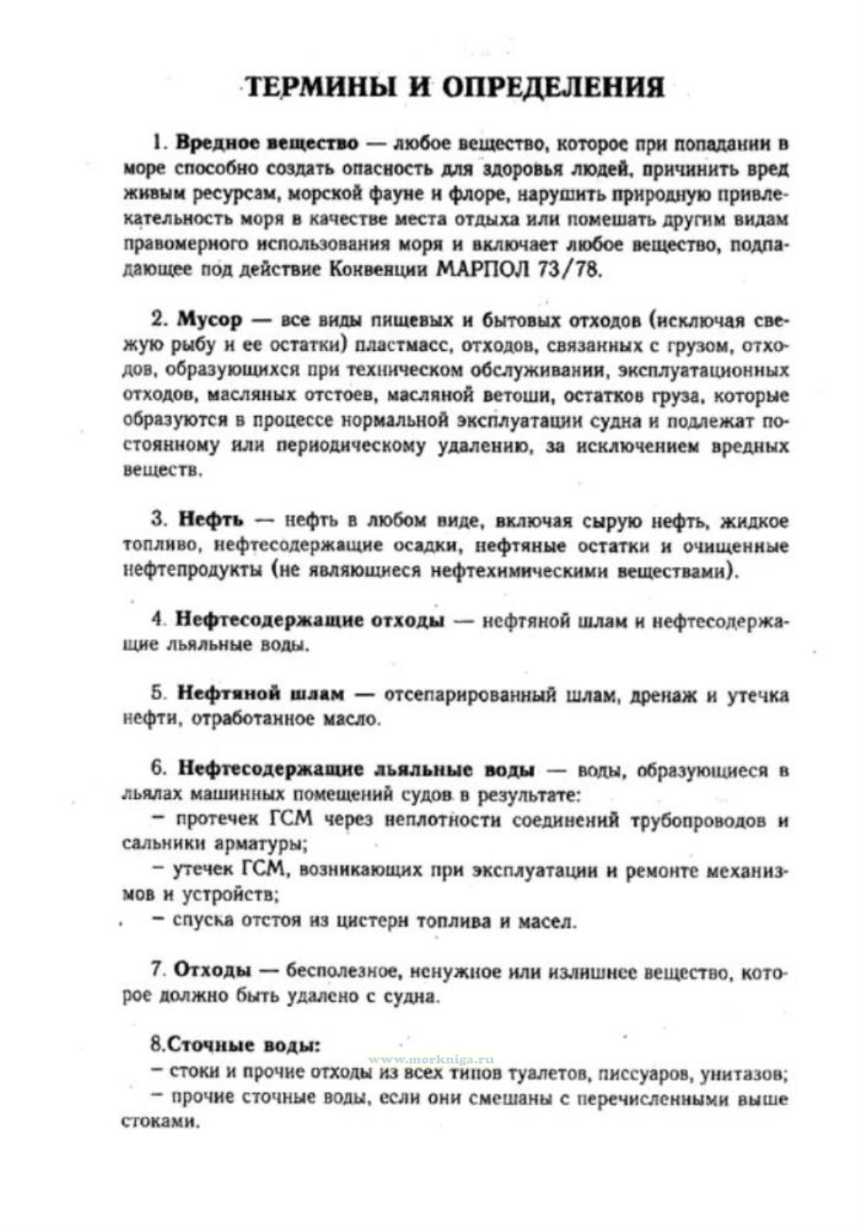 7. Капитаны судов должны получить от оператора приемных сооружений, в том числе барж и автоцистерн, расписку или свидетельство, в которых указывается количество отходов и вредных веществ, а также время и дата. Расписку или свидетельство следует хранить вместе с журналом.