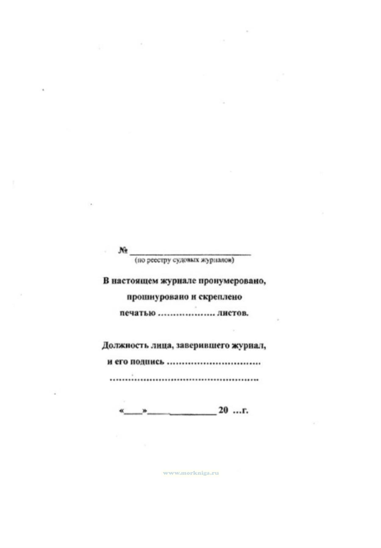 1. Журнал является судовым документом и оформляется в соответствии с установленным для судовых документов порядком. Журнал должен быть прошнурован, внесен в реестр судовых документов и заверен капитаном порта.