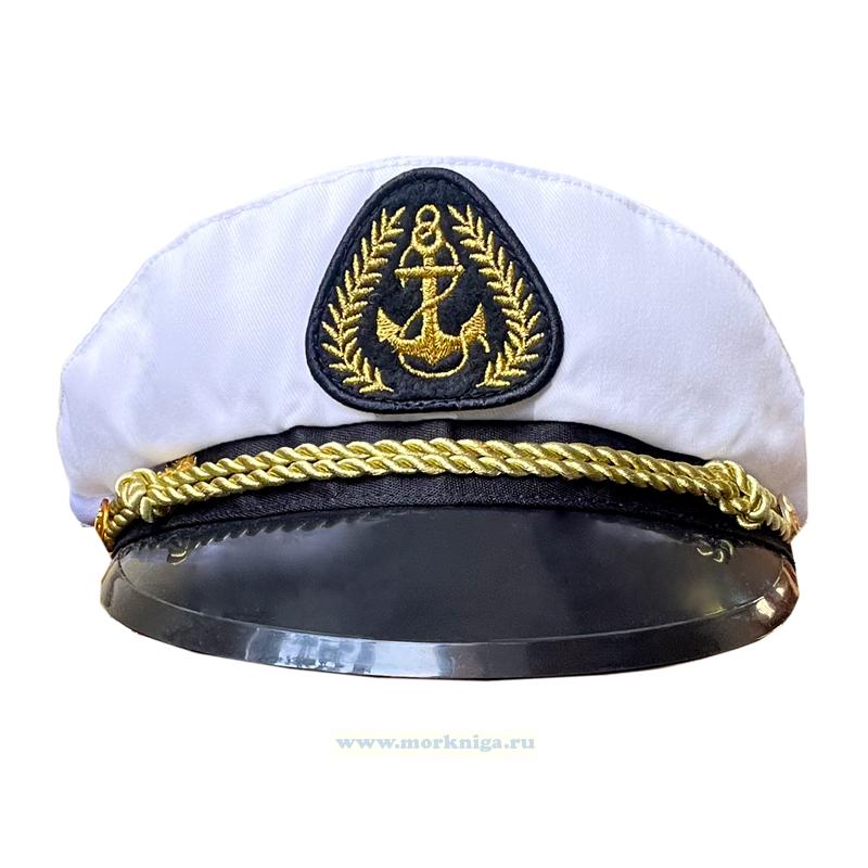 Капитанка с шевроном "Якорь" белая, пластиковый козырек с золотым шнуром.