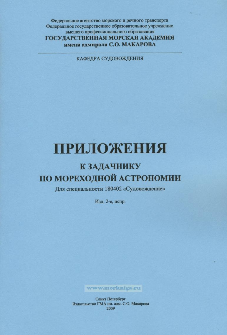 В приложении включены все необходимые таблицы для выполнения решения задач по дисциплине "Мореходная астрономия", приведенных в пособии "Задачник по мореходной астрономии" издания ГМА им. адм. СО. Макарова 2009 г.