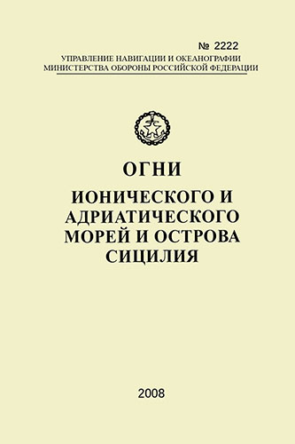На февраль 2019 года книга Огни Ионического и Адриатического морей и острова Сицилия. Адм. № 2222 содержит корректуру согласно Извещению мореплавателям. Выпуск 5. № 541 (от 2 февраля 2019 г.) Адм. 9956.05