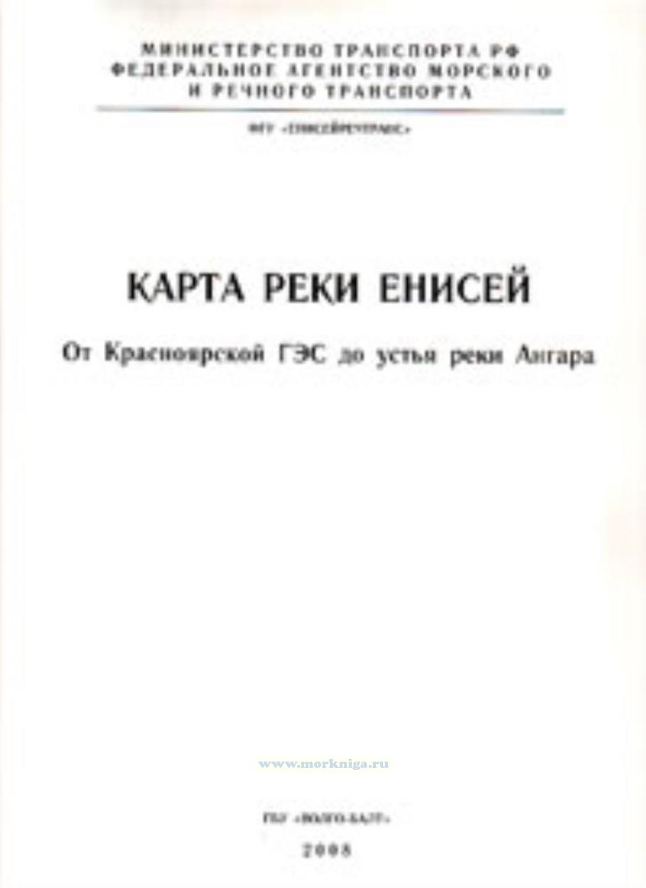 Карта реки Енисей составлена и откорректирована по данным на начало навигации 2008 г. Сведения об изменениях, происшедших после указанной даты, публикуются в последующих выпусках корректуры, издаваемых ФГУ "Енисейречтранс".
