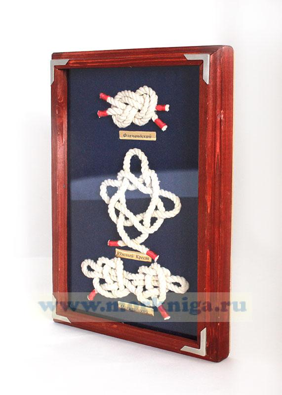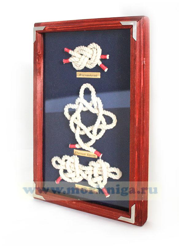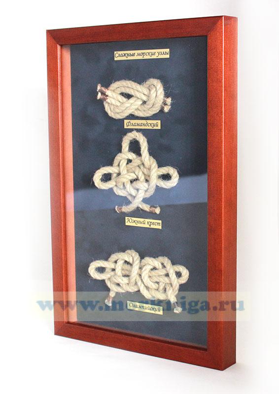 Стенд "Сложные морские узлы" представляет собой информационную панель, на которой размещены названия и наглядные образцы 3 видов морских узлов: