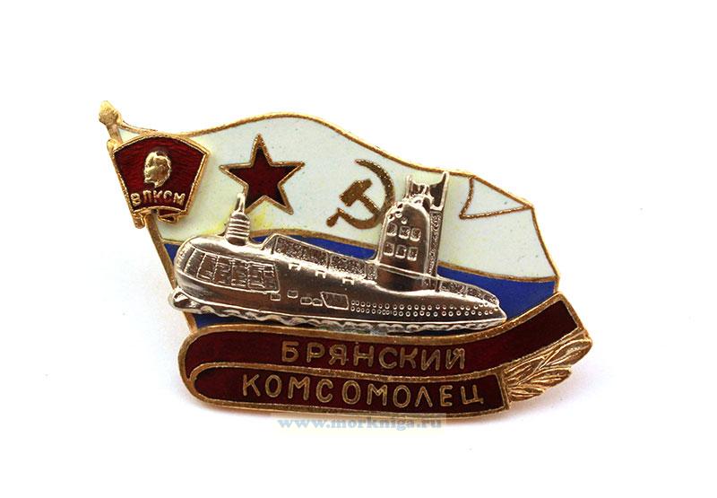 Описание знака: Знак состоит: основа - флаг ВМФ СССР, накладки - подводная лодка, знак ВЛКСМ