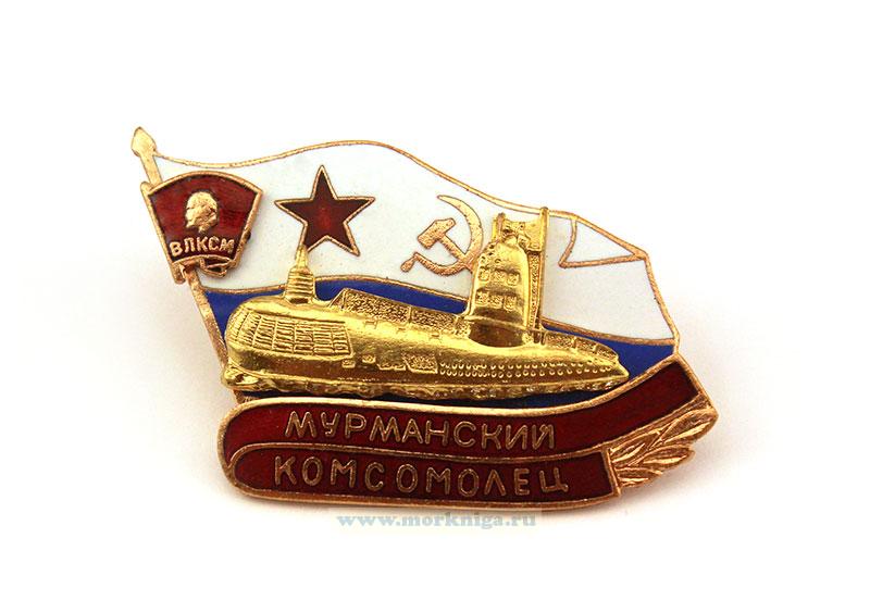 Описание знака: Знак состоит: основа - флаг ВМФ СССР, накладки - подводная лодка, знак ВЛКСМ